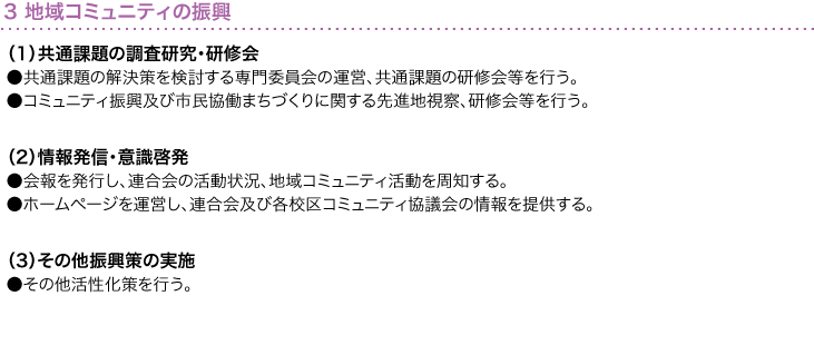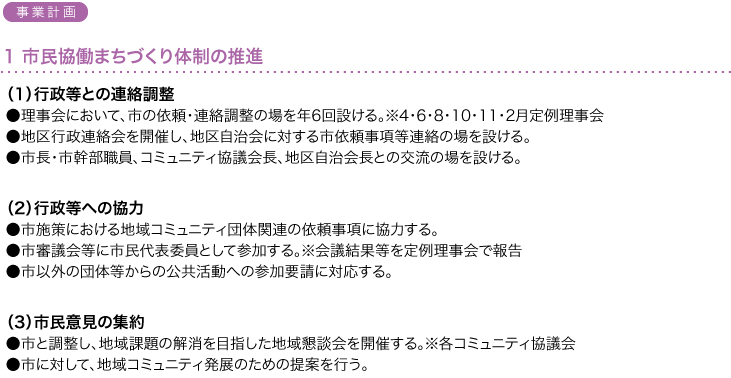 *市施策への協力、市審議会等への委員参加 *研修会開催・関連資料作成等の地域課題対応活動